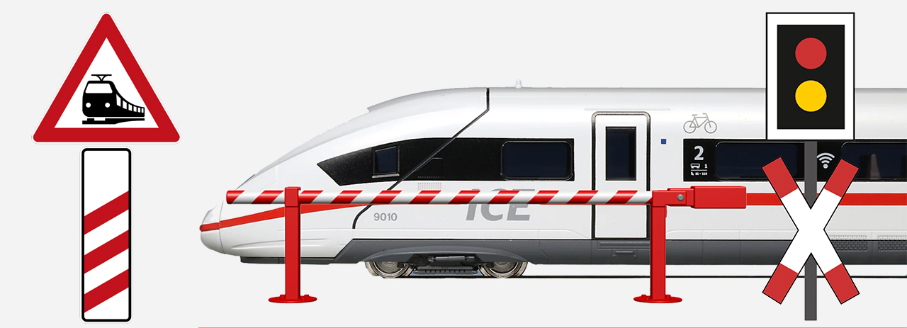 - Geschwindigkeitsbegrenzungen beachten: Prüfe deine Geschwindigkeit beim Heranfahren an einen Bahnübergang, wenn nötig, langsamer werden.