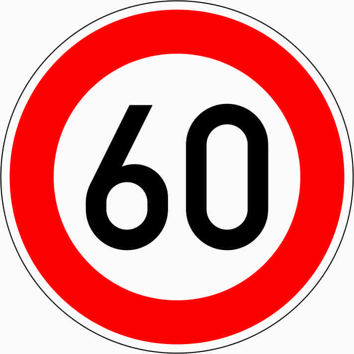 die angegebene Geschwindigkeit darf nicht überschritten werden, sie ist in der gesamten Zone (Gebiet) gültig