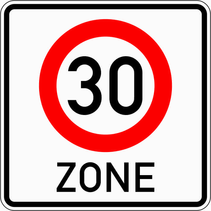 - Tempo-Zonen, insbesondere in Wohngebieten, in der Nähe von Schulen oder Kindergärten.