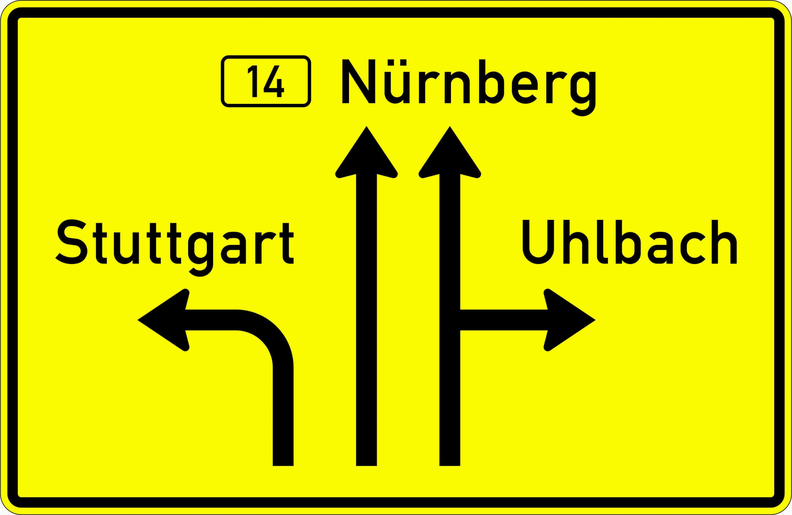 Richtzeichen im Straßenverkehr sind Verkehrszeichen, die Verkehrsteilnehmern eine bestimmte Richtung, Orientierung oder Zusatzinformation geben. Sie dienen dazu, den Verkehr sicher und flüssig zu gestalten, indem sie auf Besonderheiten hinweisen oder spezielle Anweisungen geben. Im Gegensatz zu Verbotsschildern oder Warnschildern haben Richtzeichen oft informativen Charakter und geben Empfehlungen oder Anweisungen, können aber auch ein bestimmtes Verhalten vorschreiben. Richtzeichen sind auch wichtige Orientierungshilfen im Straßenverkehr. Sie unterstützen und leiten die Verkehrsteilnehmer.