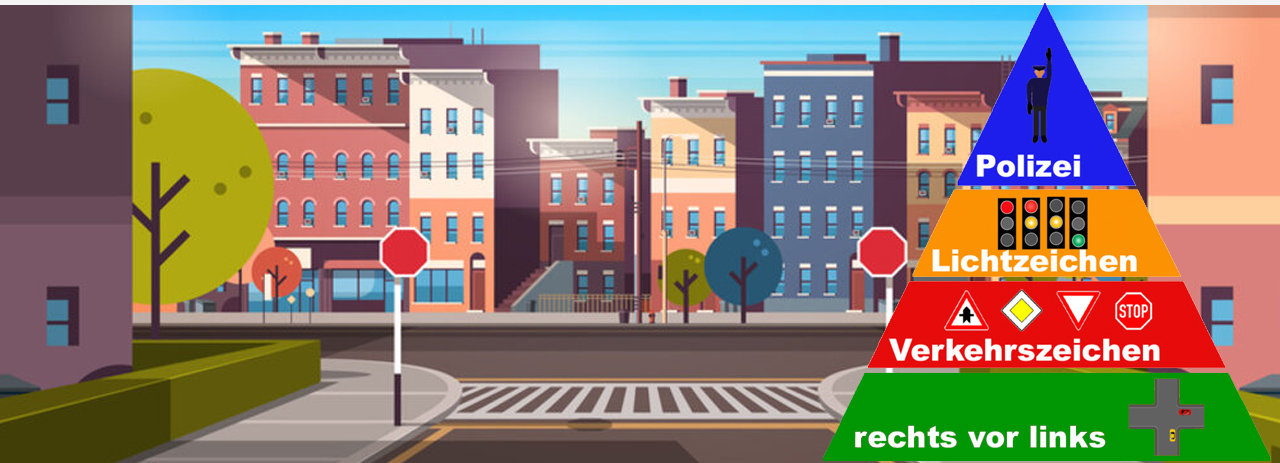 rechts vor links → Vorfahrtszeichen → Ampel → Polizei