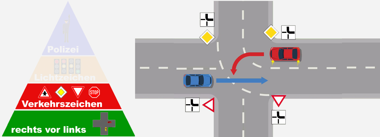 - Sie müssen den Verlauf der abknickenden Vorfahrt beachten. Wollen sie der abknickenden Vorfahrt folgen, haben sie Vorfahrt.