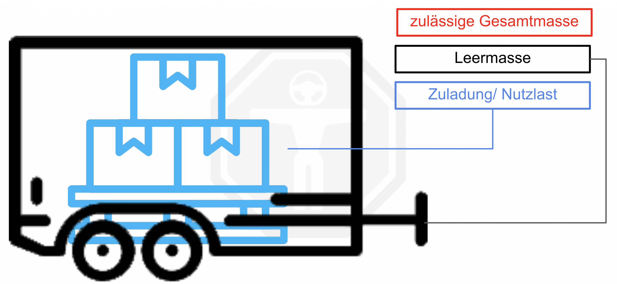 Die Begriffe zulässige Gesamtmasse (zGG), Leermasse und Nutzlast sicher definieren, deren Bedeutungen für den Fahrzeugbetrieb erläutern sowie anhand der Angaben in der Zulassungsbescheinigung Teil I (F.1 und G) die Nutzlast selbstständig berechnen.