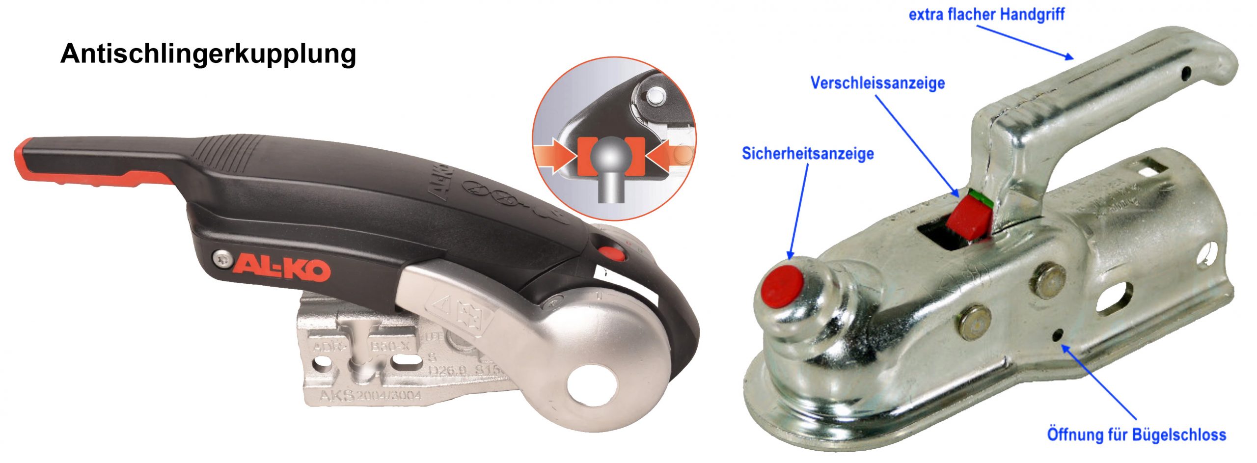 Die Kupplungsklaue ist das Verbindungselement am Anhänger, das auf die Anhängerkupplung (Kugelkopf) des Zugfahrzeugs aufgesetzt wird.