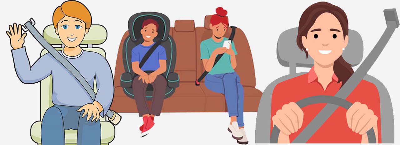 Jede Person, die im Pkw mitfährt, muss während der Fahrt angeschnallt sein. Sicherheitsgurte müssen korrekt angelegt werden.