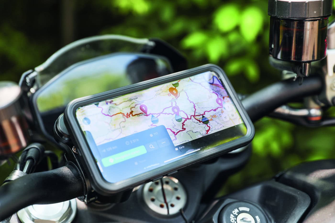Viele Motorradfahrer nutzen Smartphones als Navigationshilfe, da sie flexibel und kostengünstig sind.