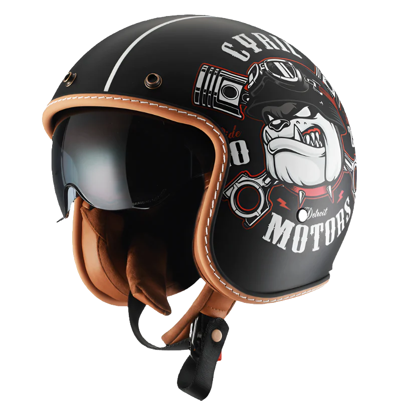 - Merkmale: Mischung aus Integral- und Crosshelm, mit Visier und oft einem Sonnenschutz.